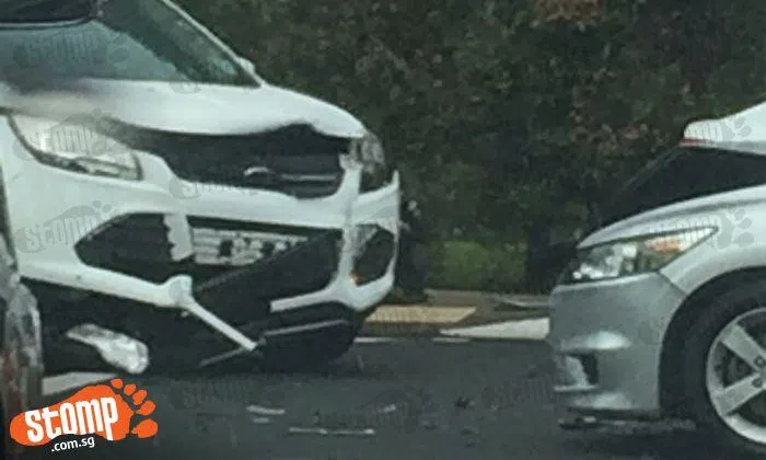 Stomper Mark alerted Stomp to an accident that occurred this afternoon (Mar 29) at the junction of Sin Ming Avenue and Sin Ming Drive, involving at least two cars.
