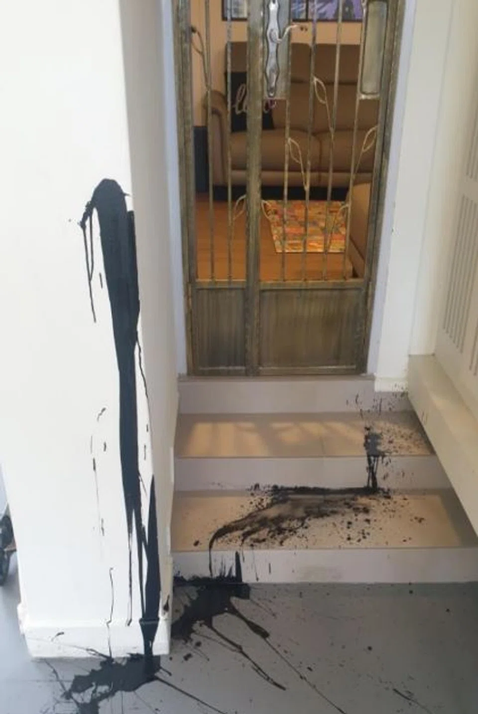 The police were alerted to black paint splashed on the main door, gate and steps of a Joo Chiat Road flat on Jan 2.