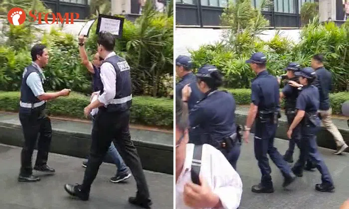 Stomper Jeri alerted Stomp to the incident and shared a video and photos of the man protesting.