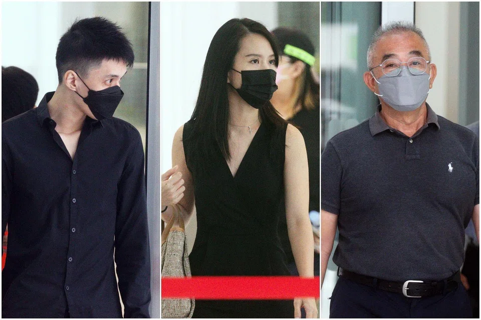 (From left) Mr Edmund Yap, brother of Mr Eugene Yap, Ms Michelle Wong, sister of Mr Gary Wong, and Mr Long Sai Tew, father of Mr Jonathan Long, at the State Courts on June 9, 2022. ST PHOTOS: KELVIN CHNG