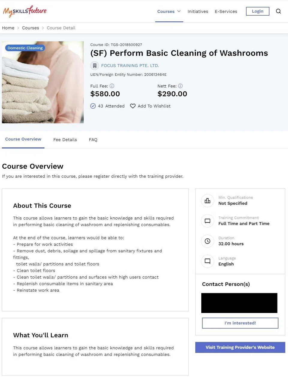 On Feb 19, a screengrab of a listing for the “Perform basic cleaning of washrooms” course on SkillsFuture was posted on social media and roundly mocked for its $580 price tag before subsidies.