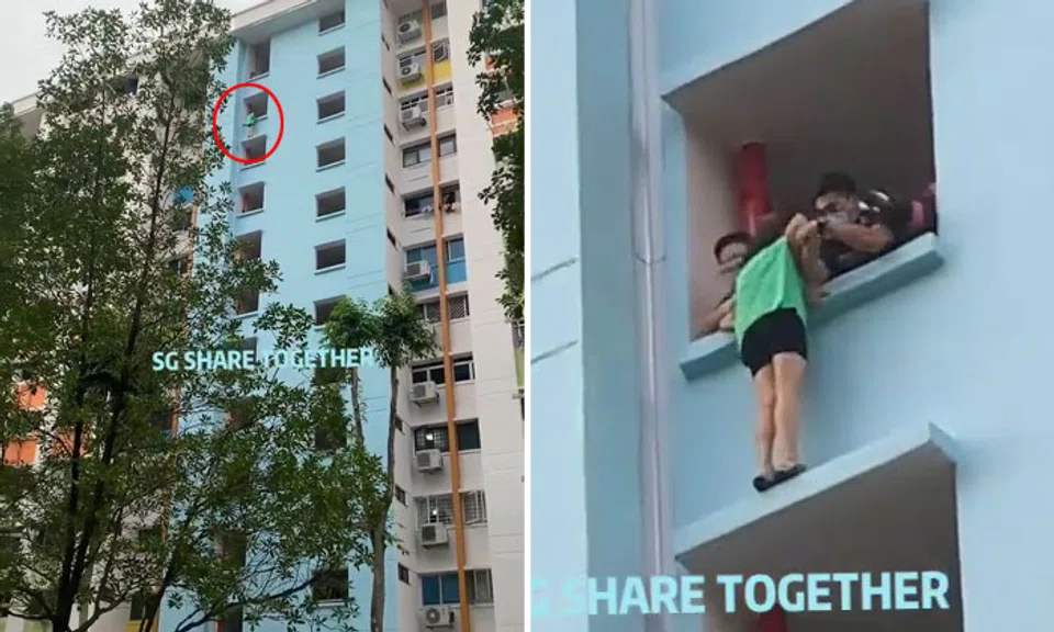 59-year-old woman arrested after getting rescued from ledge of Yishun block