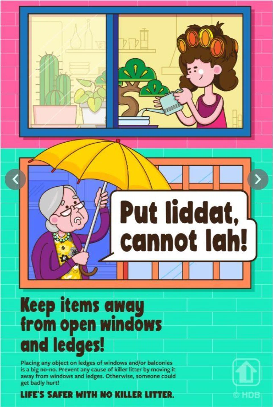 According to the Housing Board, such potted plants are potential killer litter and should be kept away from ledges