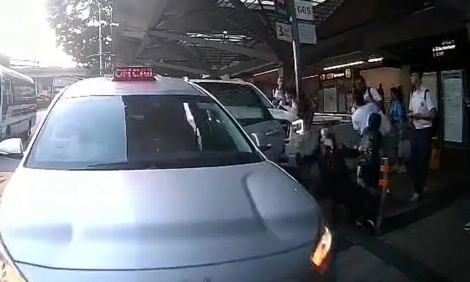 A video of the incident, uploaded on social media, shows the cab pulling up at a taxi stand. Captions indicate that the incident took place outside Nex shopping mall.