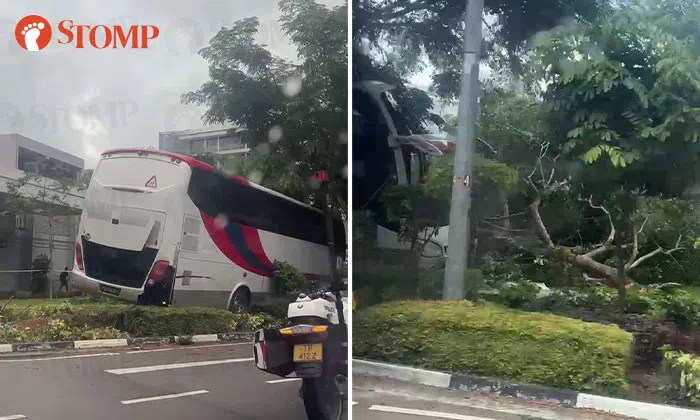 In response to Stomp queries, the Singapore Civil Defence Force said they were alerted to the accident involving a private bus and a lorry at 11.15am. The police were alerted at 11.20am.