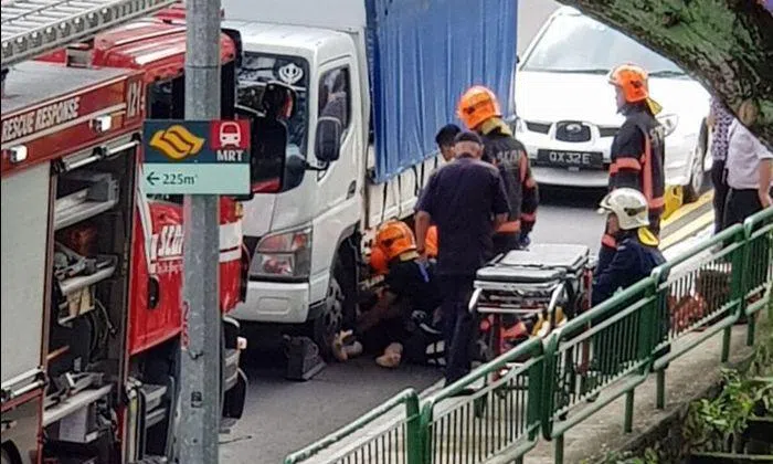 The victim, identified as Ms Yin Ailai by Shin Min Daily News, sustained serious injuries and was manually extricated from under the lorry.