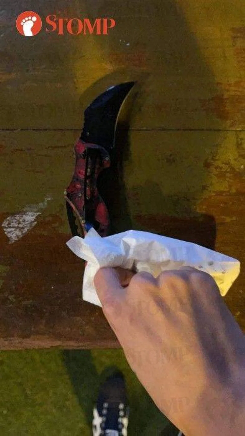 Stomper Jane also shared circulated photos showing the wrecked premises of the restaurant and a knife that was allegedly used in the fight.