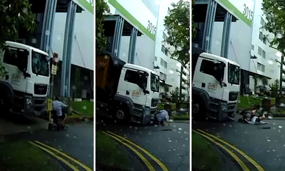 76-year-old PMD rider gets pinned under truck before falling to ground in Ubi