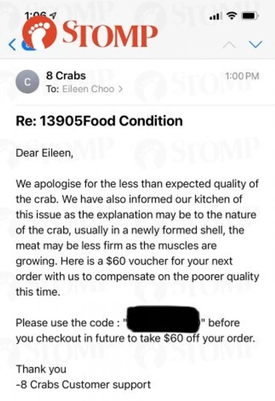 Eileen told Stomp that it was her first time ordering from 8 Crabs and was excited to do so as she had seen many celebrities recommending it on Instagram.
