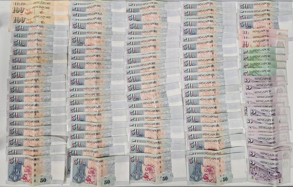 Cash and gambling paraphernalia seized at Jurong East. PHOTO: SPF