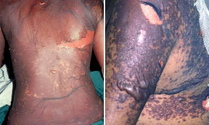 A man in his 20s had blisters across 60 per cent of his body, including sensitive areas such as the face, chest, genitals and soles of his feet.