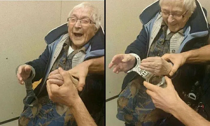 "In her life she never committed any crime, and thought it would be exciting to experience. As you can see in the picture from our post, she found it hilarious to be in the inside with the handcuffs."