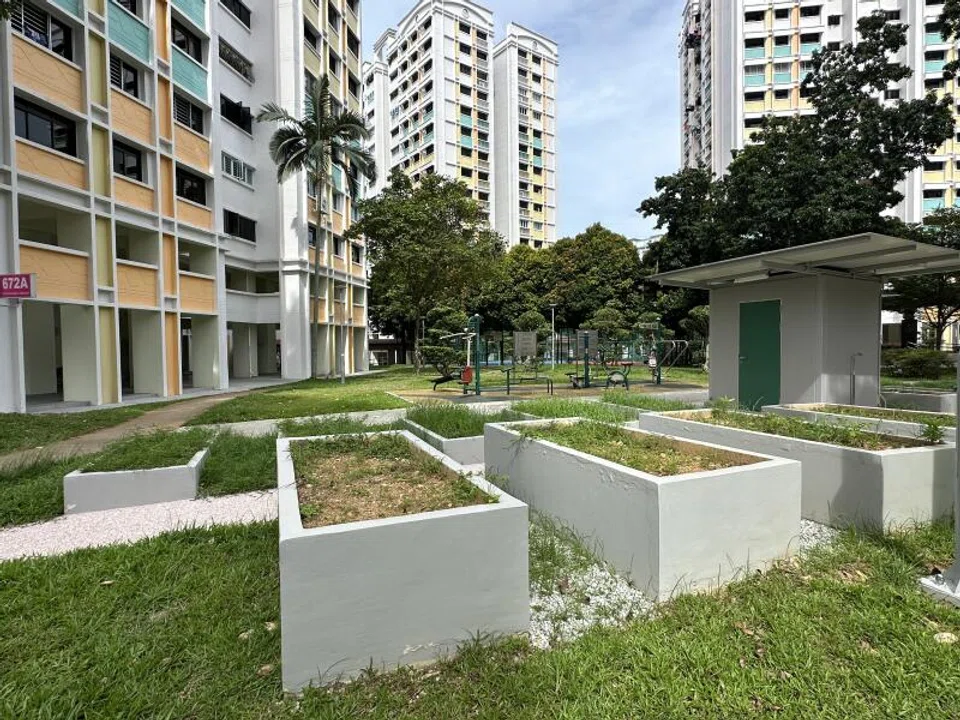 A spokesperson explained that an experienced designer, with several local projects under their belt, created the garden. The rectangular plots maximise planting space and provide functional gardening areas-crucial given Singapore's land constraints.