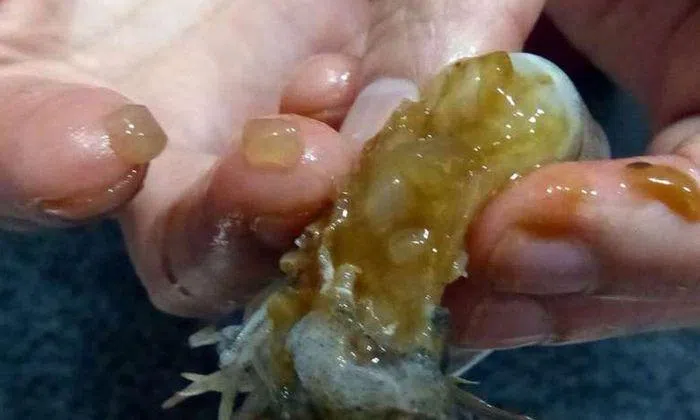 After she placed the prawns in boiling water, the blobs hardened into a solid white "rubber-like" substance, she told The Straits Times.