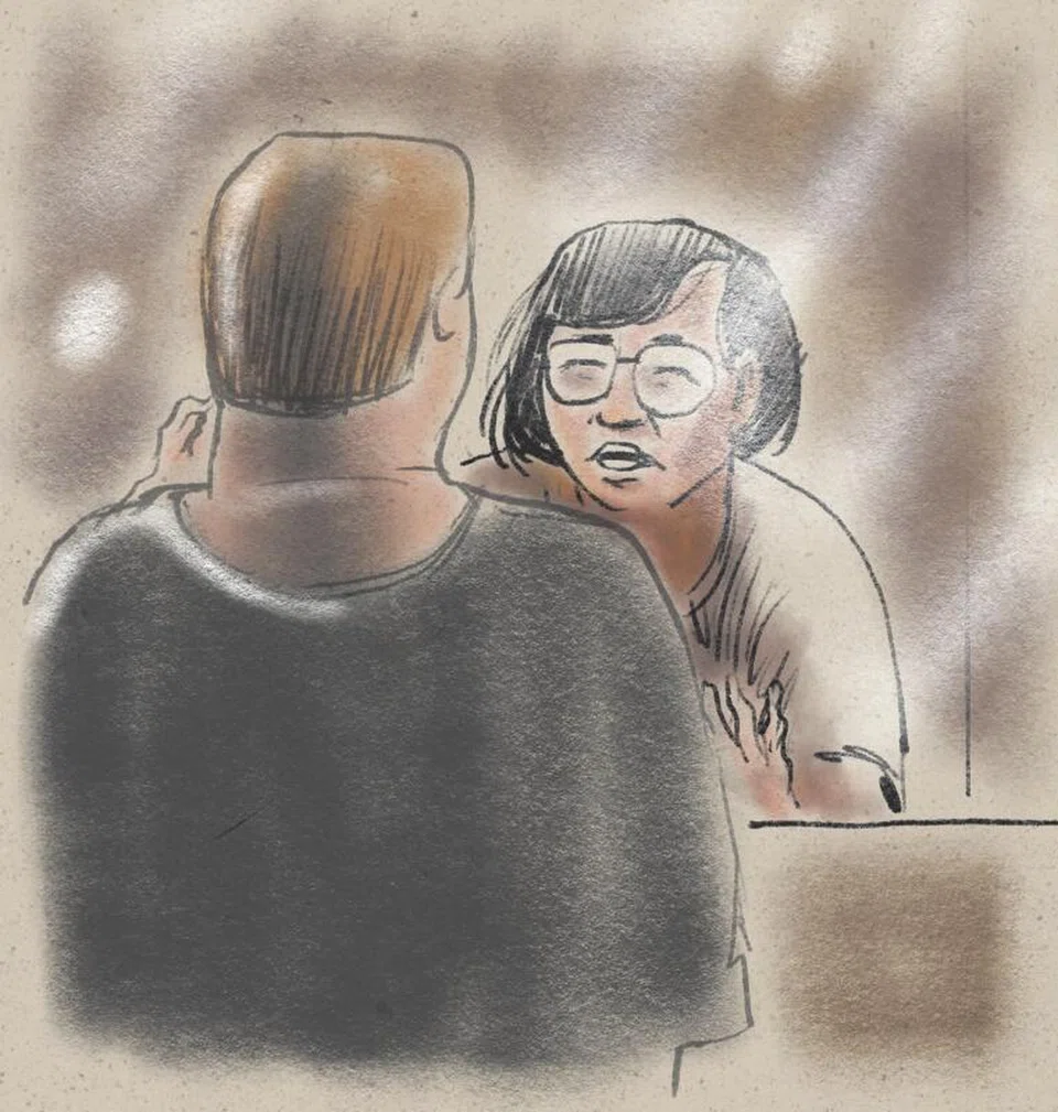 Foo Li Ping was allowed to talk to her mother and other relatives after the court session ended. ST ILLUSTRATION: MANNY FRANCISCO