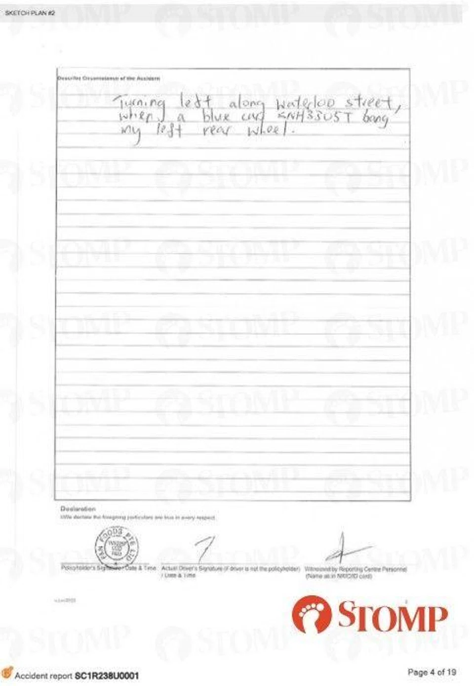 If you have dashcam footage or any information about the accident, kindly contact Stomp at stomp@stomp.com.sg or WhatsApp 9384 3761.