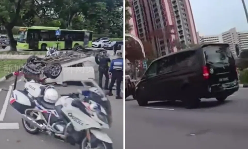 In a video of the accident's aftermath posted on Facebook, a van is seen in the rightmost lane of the five-lane road near Wisma Geylang Serai, with a door open. A police car is in the lane next to the van.