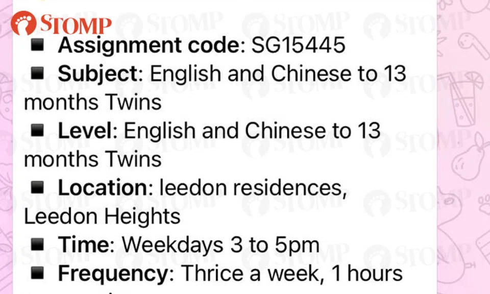 "Her intention was for the tutor to speak to her baby in conversational Mandarin. She wanted her baby to pick up the language, but she did not have the time to teach," he said.