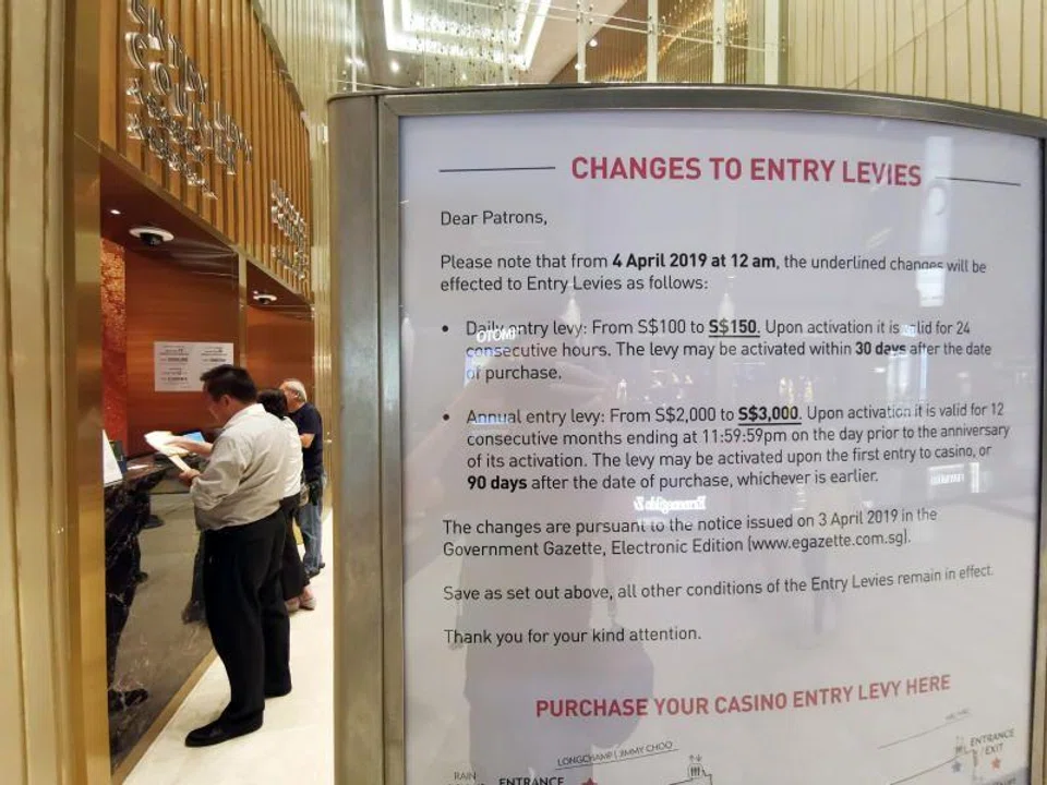 Currently, casinos charge a daily entry levy of $150 and annual entry levy of $3,000 – but it applies only to Singapore citizens and permanent residents.
