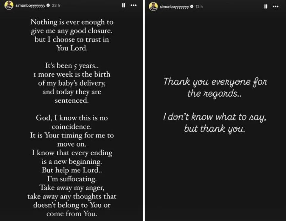 Shortly after the sentencing, Simonboy shared a photo of Megan on Instagram, apologising to her.
