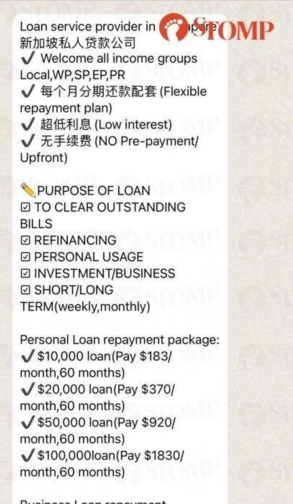 "With my financial capability, I was able to make the commitment of repaying $1,830 for 60 months. So I have contacted this Ah Boy in the loan ad. Ah Boy gave me the Acra (Accounting and Corporate Regulatory Authority) number of his company and said that he was a licensed moneylender in Singapore.