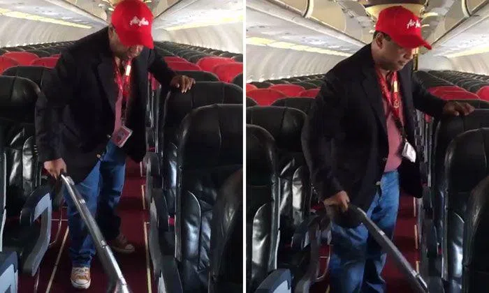 Holding true to his "walk-around" management style, a Twitter video shows him taking on the task of a crew member by vacuuming one of AirAsia's fleet of planes.
