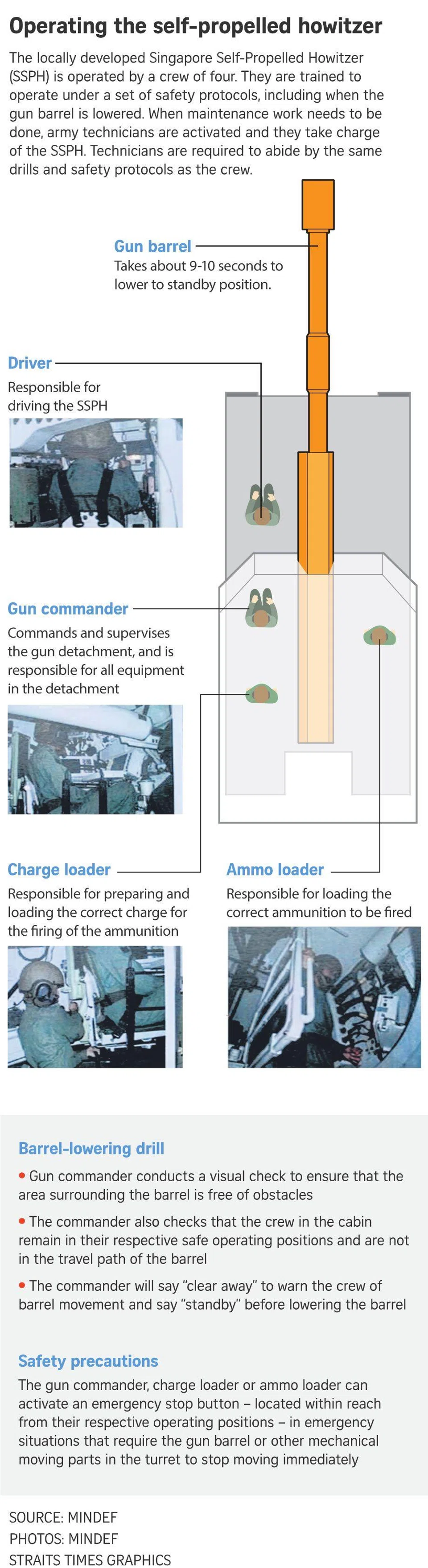 It said that in the last 15 years of SSPH operations, there has not been any reported injury of servicemen due to the gun lowering for maintenance, or operating in or firing of the SSPH.