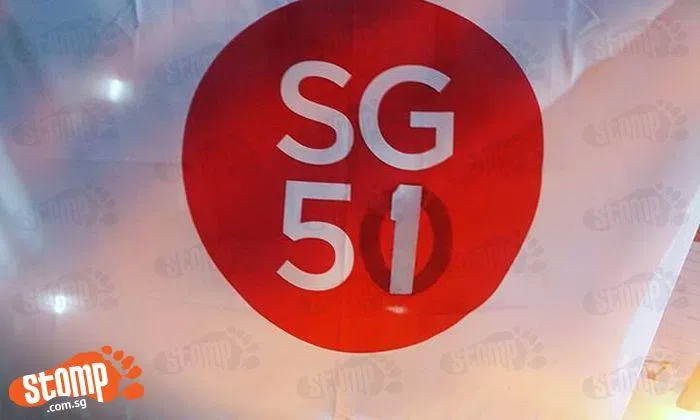 The banner originally says 'SG50', but someone appears to have painted over the '0' so that it becomes 'SG51' instead.