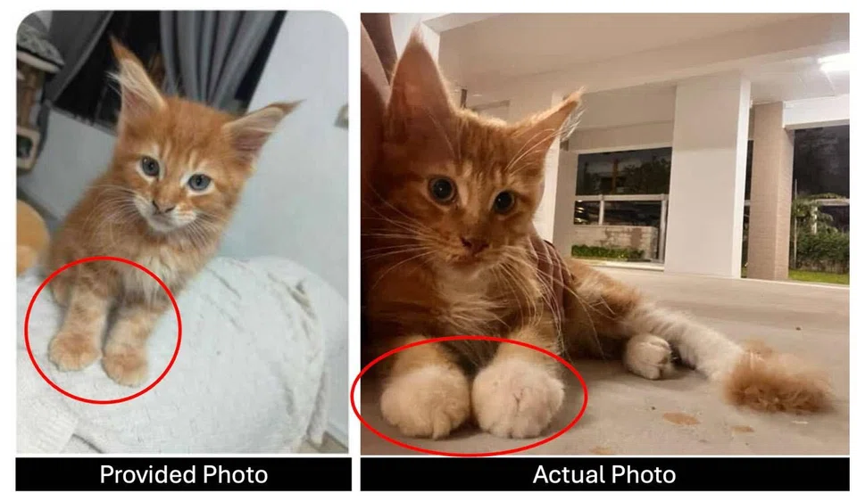 They said Emellia Lullaby only reached out at 3.19pm that day and sent a photo with mismatched paw colours, which the vet "confirmed would not change over time".