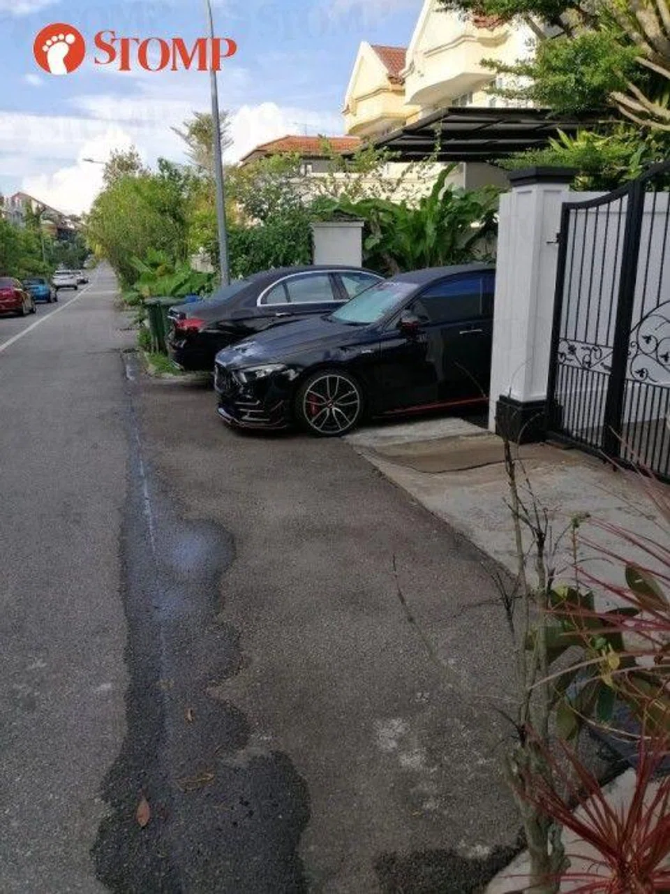 Stomper Gant saw two cars parked halfway out of the gate of a landed property and on the public walkway at Jalan Meragi in Simei.