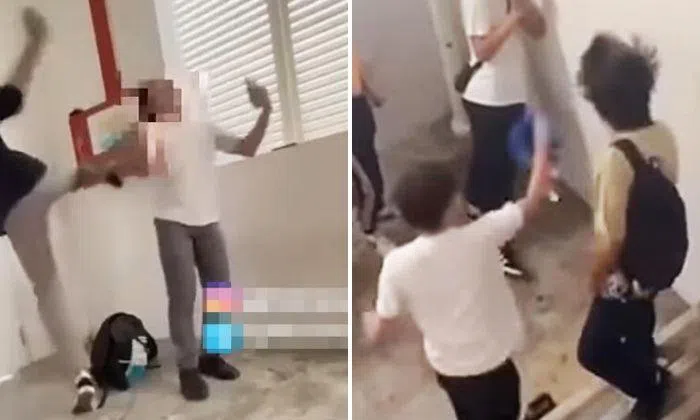 In videos posted on Facebook and viewed by The Straits Times, a teenage boy is seen on his knees in a stairwell and surrounded by a group of about 10 other people. The boy is asked to kiss the shoes of a teenage girl, which he does.