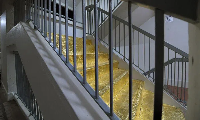 "Art not vandalism", says artist behind mysterious golden stairway at Jalan Rajah HDB