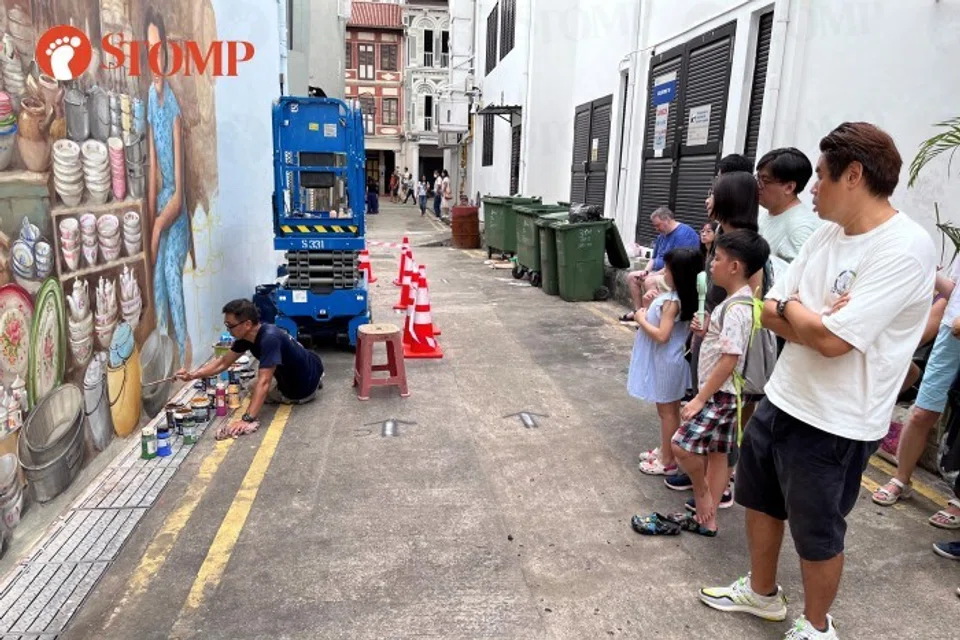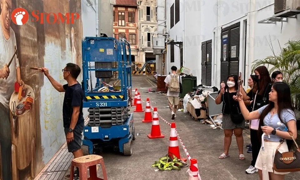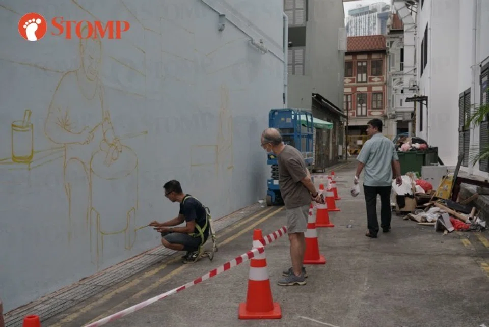When Stomp visited the Temple Street alleyway where Mr Yip was working on his mural on Saturday (April 22) at 4.30pm, most of the rubbish appeared to have been cleared.