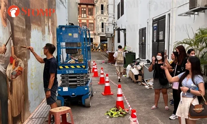Visual artist Yip Yew Chong said it was "embarrassing" to have people see the illegally dumped rubbish in the Chinatown alleyway where he was commissioned to paint an outdoor mural.