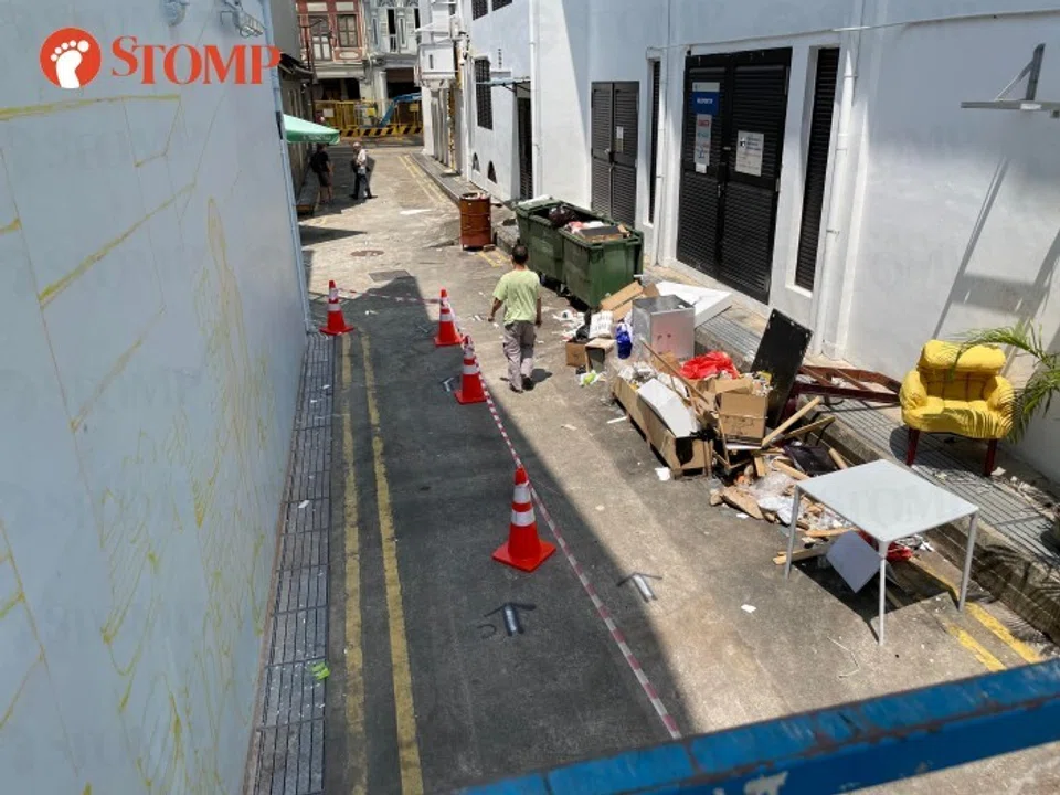 When contacted by Stomp on Thursday night (April 20), Mr Yip said: "It hasn't affected my work as the rubbish is on the other side of the alley. Just embarrassing when visitors and tourists came by and saw all this rubbish!"