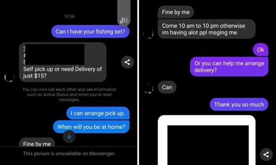 The victims would contact the scammers using the respective platform's in-app messaging function and would then be directed to pay for the selected second-hand items.