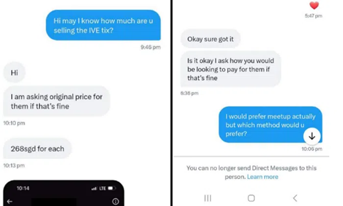 For victims who have received their tickets via email or WhatsApp, they would realise that they have been scammed when these tickets are found to be invalid on the day of the concerts or when the scammers refuse to also provide the physical tickets.