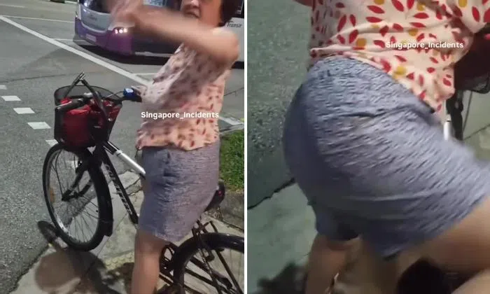 Aunty on bicycle yells vulgarities, purposely backs into pedestrian in altercation outside Jurong Point