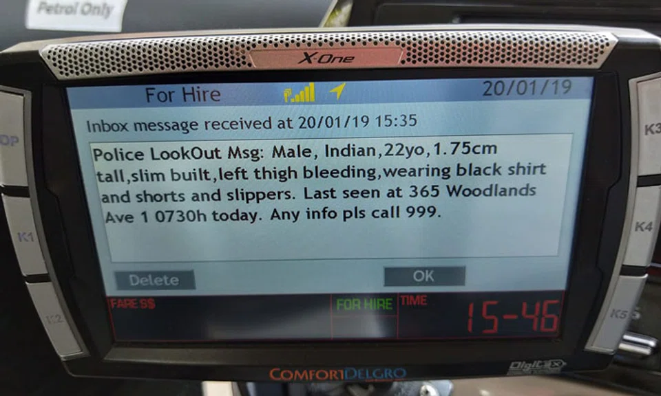 At 3.35pm, taxi drivers received a lookout message to keep an eye out for the man who was described as being about 1.75m tall, slim and wearing a black shirt, shorts and slippers.