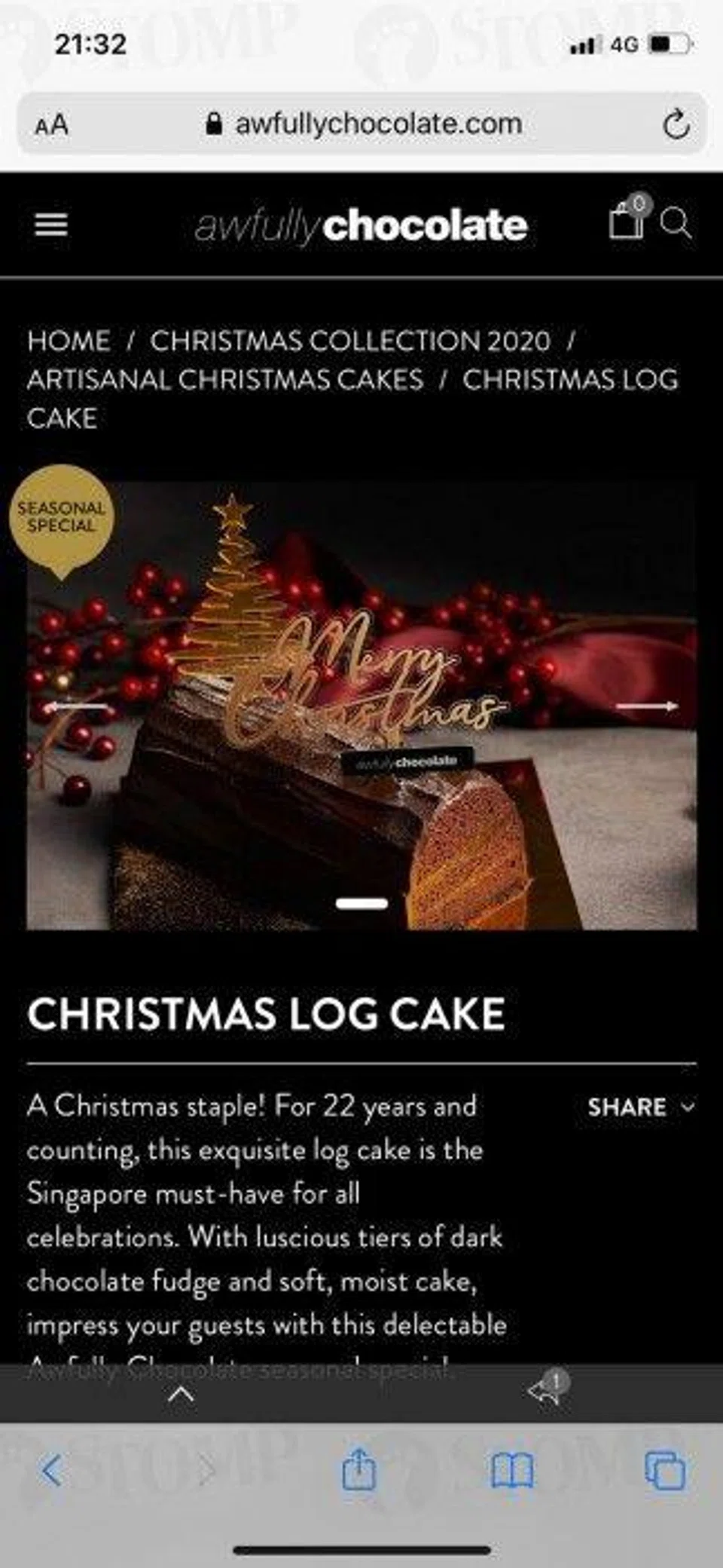 In a bid to fully get into the festive mood, Stomper Jason ordered a log cake from Awfully Chocolate to surprise his family on Christmas Day.