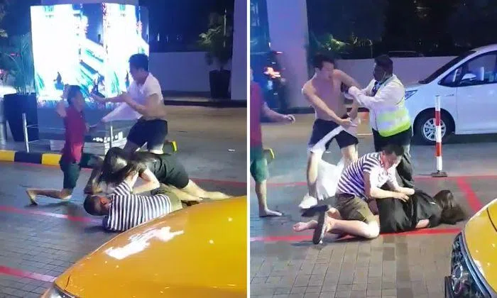 A dramatic fight akin to a wrestling match unfolded at a taxi stand outside the Marina Bay Sands Casino, drawing equally epic reactions online.