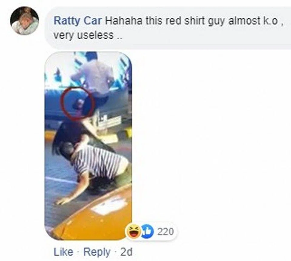 Meanwhile, a woman appears to be holding back a man who is clad a red shirt. However, he kicks the man in the white shirt and joins the altercation.