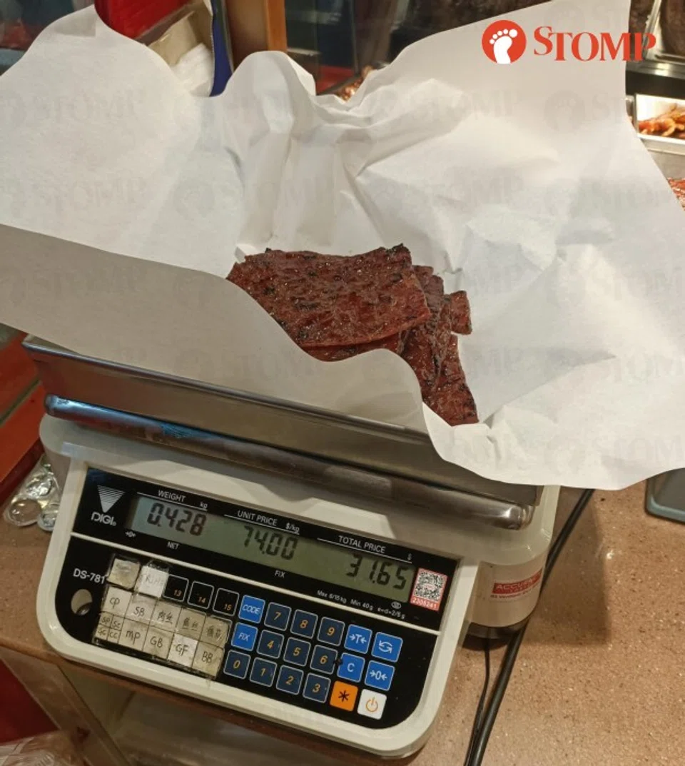 "The aunty was cutting here and there to ensure it was close to 428g so the company wouldn't suffer a loss of that 72g of bak kwa," recounted the Stomper. "It was not the full 500g that I had previously paid for."