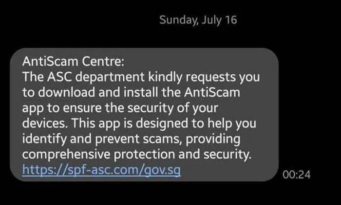 In this scam variant, members of the public would receive a scam SMS from the 'Anti-Scam Centre' (ASC), requesting them to download and install an 'Anti-Scam' app to ensure the security of their devices.