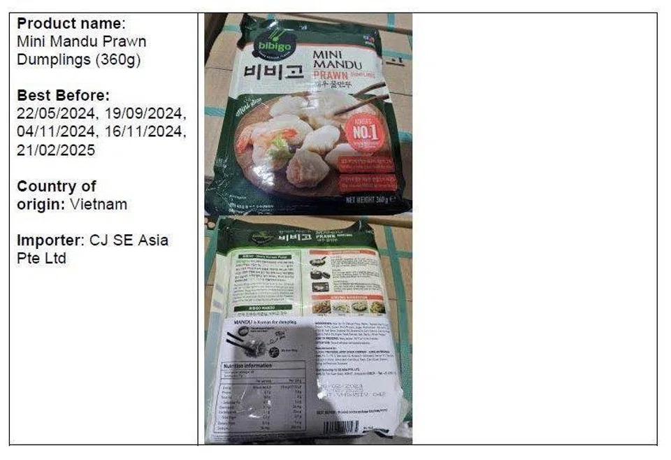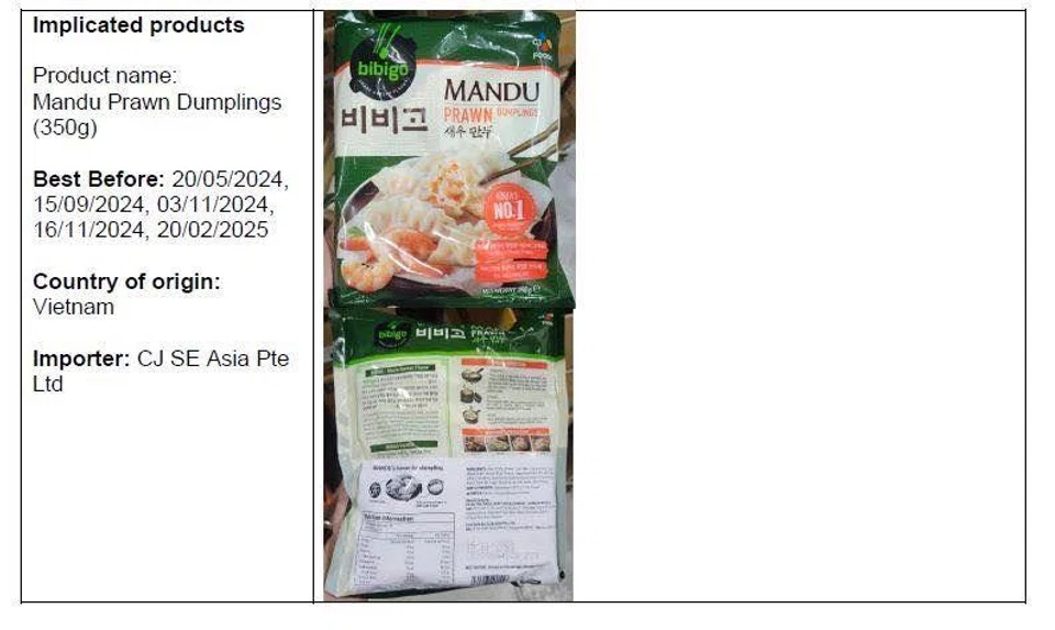 Bibigo’s Mandu Prawn Dumplings (350g) and Mini Mandu Prawn Dumplings (360g) from Vietnam were voluntarily recalled by the manufacturer, CJ Cau Tre, due to undeclared egg allergen.