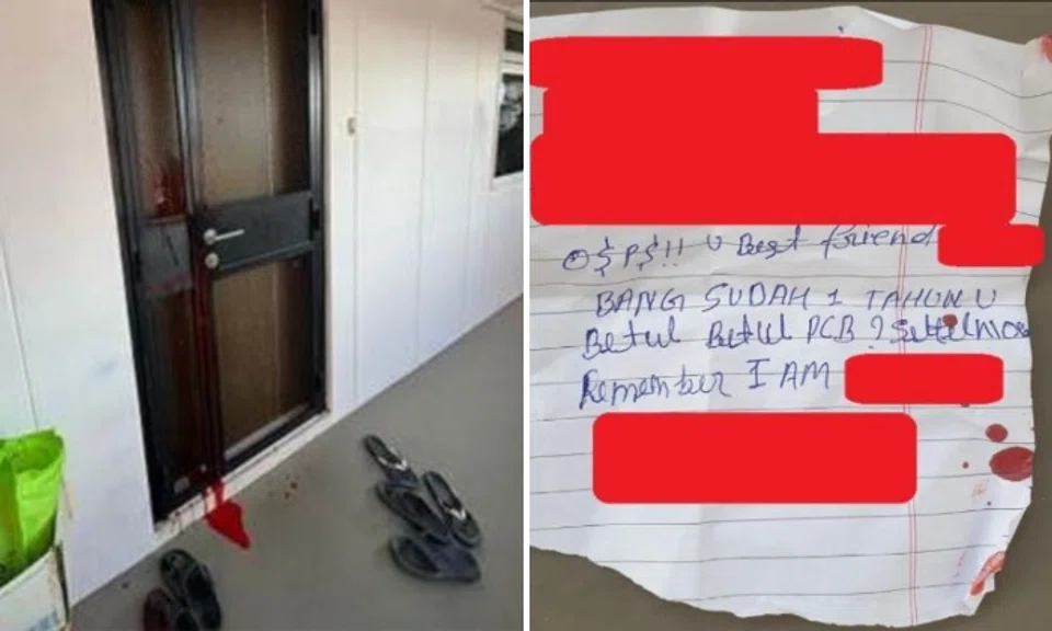 Note handwritten in English and Malay left outside flat splashed with red paint, man arrested