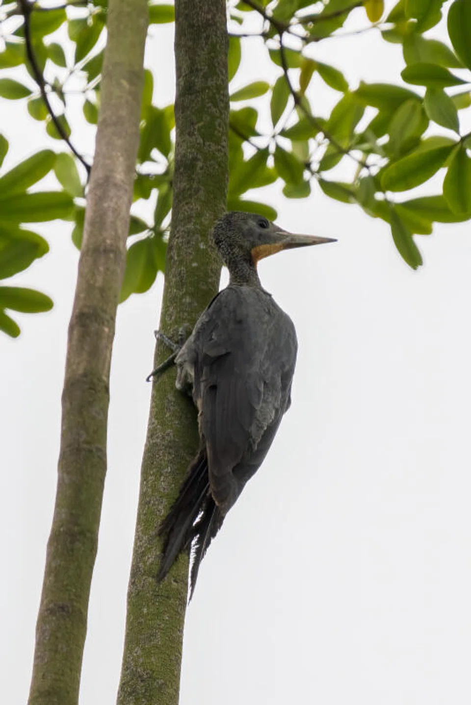 With a bald head and grey clock of feather and size of up to 51cm, the great slaty woodpecker is listed as "vulnerable" globally on the International Union for Conservation of Nature.