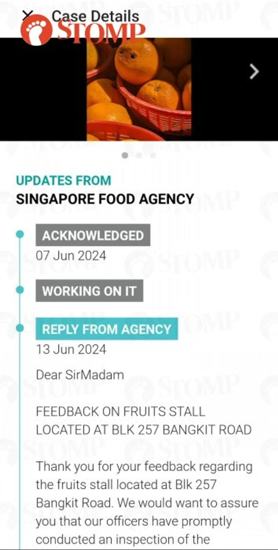 In response to a Stomp query, SFA said it is looking into the matter and added: "Food safety is a joint responsibility.
