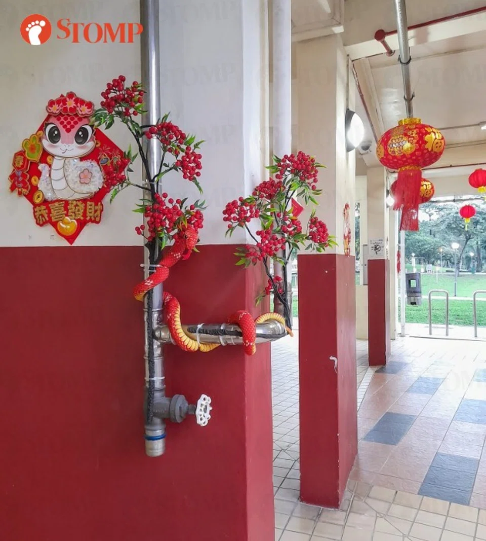 The lift lobby of Block 219 Bishan Street 23 has once again been transformed into a festive haven, as residents celebrate the Year of the Snake.
