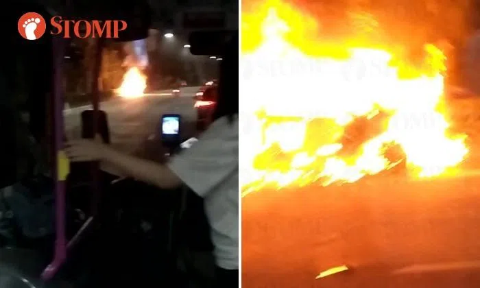 Passengers on passing bus shocked to see electric vehicle in flames on BKE: 'We can feel the heat'